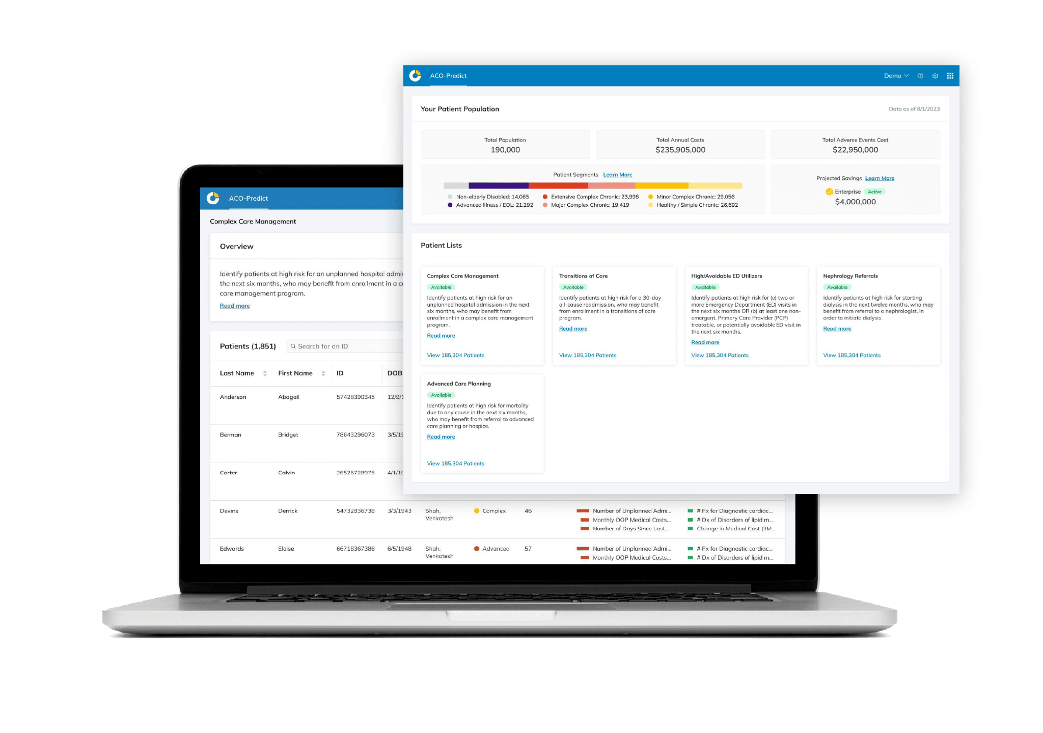 - Seamless compatibility with CMS BCDA for turnkey risk stratification