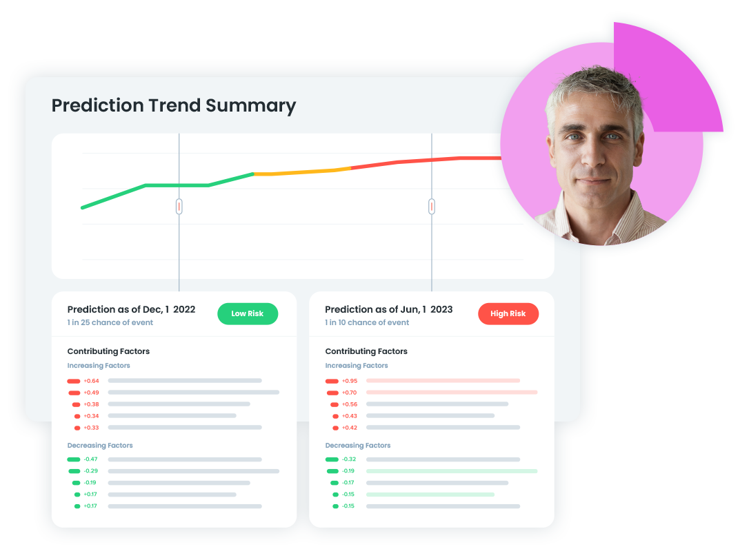Improve your ability to deliver better health outcomes and reduce avoidable resource utilization by predicting which individuals would benefit most from your solution and surfacing the specific factors contributing to their predicted risk.